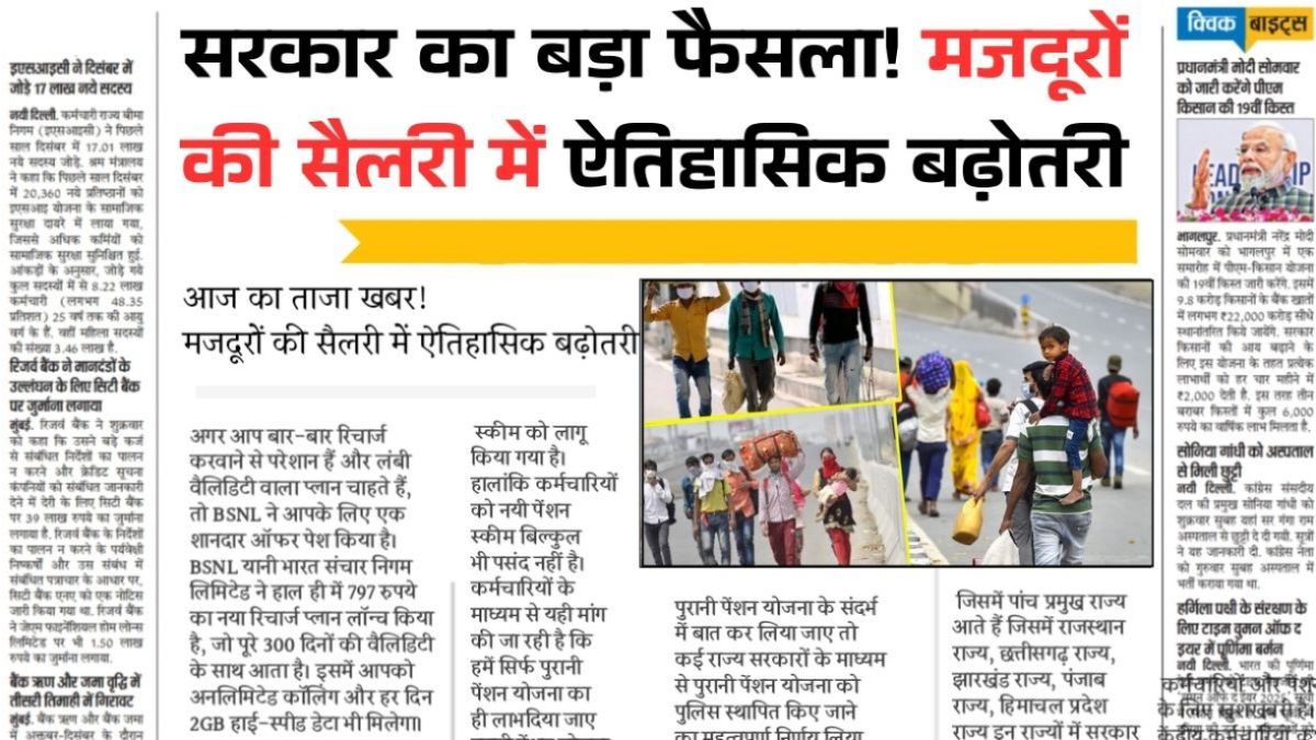 सरकार का बड़ा फैसला! मजदूरों की सैलरी में ऐतिहासिक बढ़ोतरी, जानें आपके राज्य का रेट Labour Wages Increase 2026 Riya Mishra — February 15, 2026 60+ यात्रियों के लिए रेलवे किराए में फिर से 50% छूट शुरू Senior Citizen Railway Riya Mishra — February 15, 2026 सुप्रीम कोर्ट की सुनवाई से कर्मचारियों में बढ़ी उम्मीद Old Pension Scheme 2026 Riya Mishra — February 14, 2026 आज से आम जनता को राहत, LPG गैस सिलेंडर हुआ ₹200 सस्ता | LPG Gas Cylinder New Price Riya Mishra — February 14, 2026 केंद्रीय कर्मचारियों और पेंशनभोगियों को बड़ी राहत, 4% बढ़ा महंगाई भत्ता – DA Hike Riya Mishra — February 14, 2026 बच्चों के लिए खुशखबरी! फरवरी में 5 दिन होंगे स्कूल बंद | School Holiday Update 2026 Riya Mishra — February 14, 2026 22वीं क़िस्त के ₹2000 किसानों को इस दिन मिलेंगे, फाइनल तिथि जारी | PM Kisan 22th Installment Riya Mishra — February 14, 2026 तेल के दाम धड़ाम! रिफाइंड–सरसों हुआ सस्ता, देखें आज का भाव | Cooking Oil Price admin — February 14, 2026 बुजुर्ग यात्रियों के लिए रेलवे की बड़ी पहल! रेलवे ने फिर शुरू की 2 खास सुविधाएं | Railway Senior Citizen Benefits admin — February 13, 2026 Previous 12345 Next